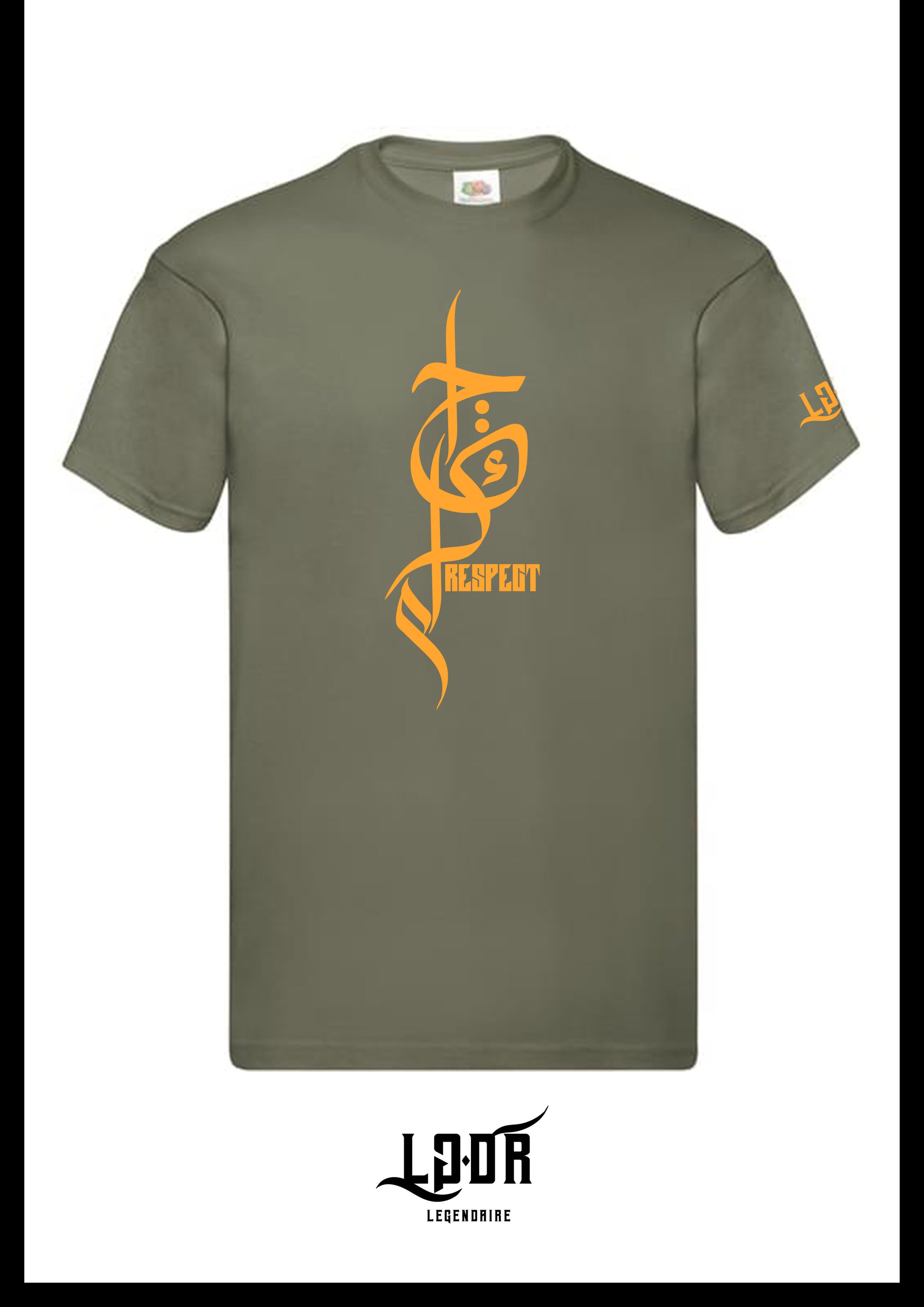 T-shirt " Respect " en Calligraphie Arabe (Vert Kaki/ Orange)